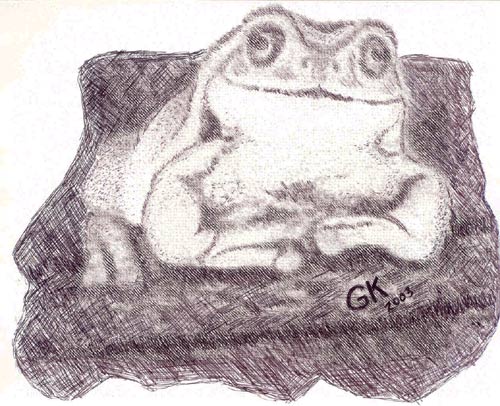 Whites TRee Frog - by Greg, in drawing in pen and pencil
